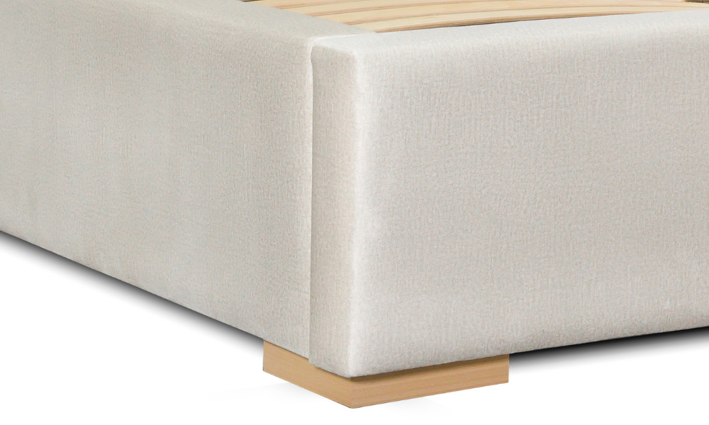 Nogi kątowe drewniane 18×18 (czarne lub naturalne). Montaż poprzez system zaczepów kątowych, zestaw śrub typu M8/ M6 oraz narożniki kątowe dla zapewnienia stabilności konstrukcji. Materiały obiciowe dedykowane dla danego modelu pochodzą z tkanin grupy 1. oraz grupy 2.