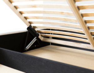Stelaż pod materac został wyposażony w podnośniki, które umożliwiają łatwe podnoszenie i opuszczanie materaca. Jest to szczególnie przydatne podczas sprzątania lub zmiany pościeli, gdy chcemy mieć dostęp do przestrzeni pod łóżkiem.